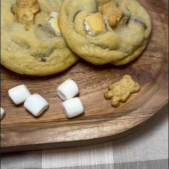 Inside, you’ll find a soft, gooey marshmallow center. On top, we add a fluffy mini marshmallow and a crunchy mini Teddy Graham cookie for a fun and delicious finish.
